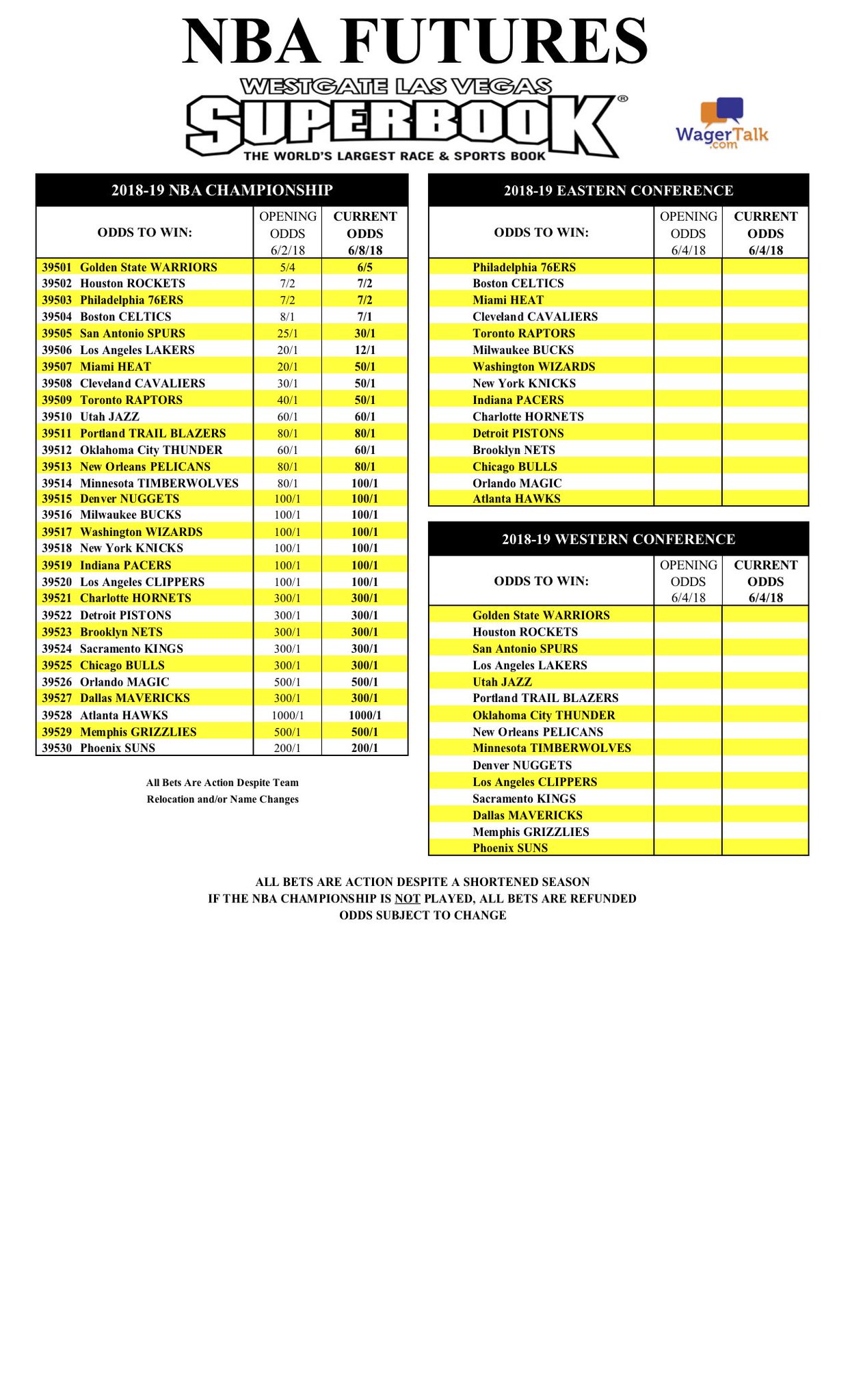40 HQ Pictures Nba Championship Odds Before Season / Betting odds for 2017-18 NBA season. +25000 ($100 bet wins $25,000). Odds shark has the full nba championship odds with handicapping info and a guide to making a futures bet on basketball. Each year i take a detailed look at the future odds for every team to win the championship. Oddsmakers will update future odds during the year, shortening the odds for good teams on hot streaks and. Keep track of how your favorite teams are performing and who will make the playoffs.